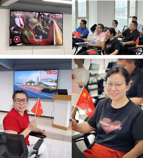 當(dāng)抗戰(zhàn)功勛榮譽旗幟、老兵乘車方隊與新型裝備亮相時,全場多次自發(fā)鼓掌,同事們普遍表示深受震撼、倍感自豪。
